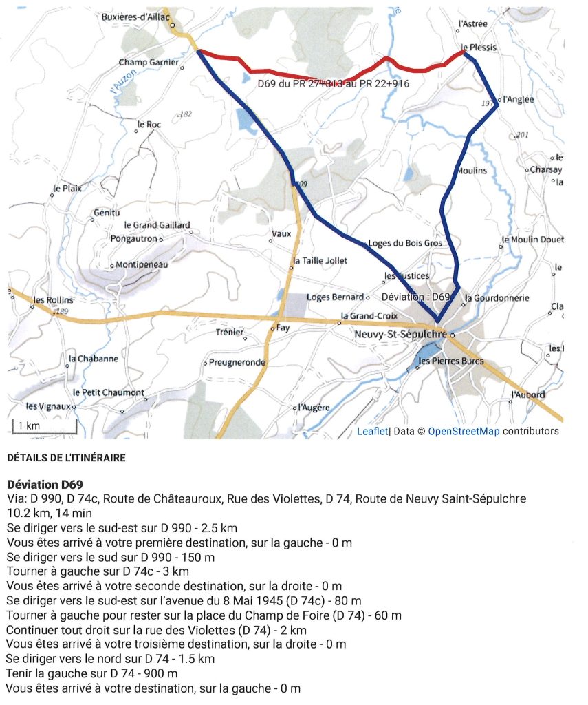 Pour les autres véhicules une déviation sera mise en place via la RD990 Neuvy Saint Sépulchre