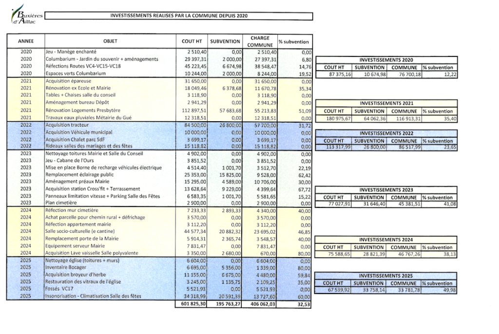 • INVESTISSEMENTS REALISES PAR LA COMMUNE DEPUIS 2020